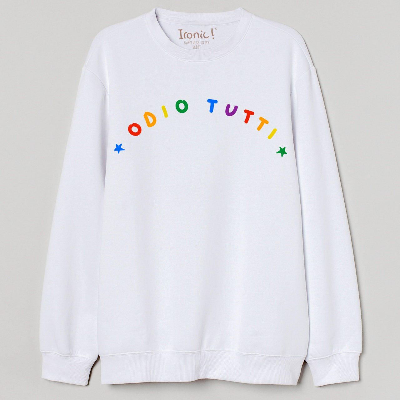 Felpa sgarzata internamente Modello girocollo manica lunga 80% cotone - 20% poliestere stampata e confezionata in Italia Lavare in lavatrice a basse temperature (massimo 30ºC) e stirare al rovescio in modo da non alterare la stampa. Salva